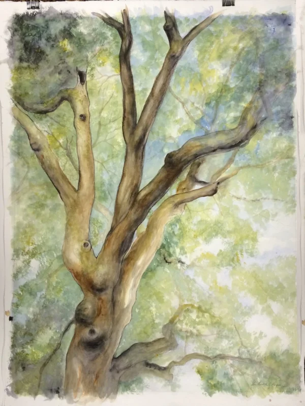In Progress... This is a large watercolor (30" x 40") which was commissioned by Ann Elsas. She asked me to create something similar to Live Oak II as a gift for her husband. The subject is a White Oak which stands in front of the 1700 house at the farm.