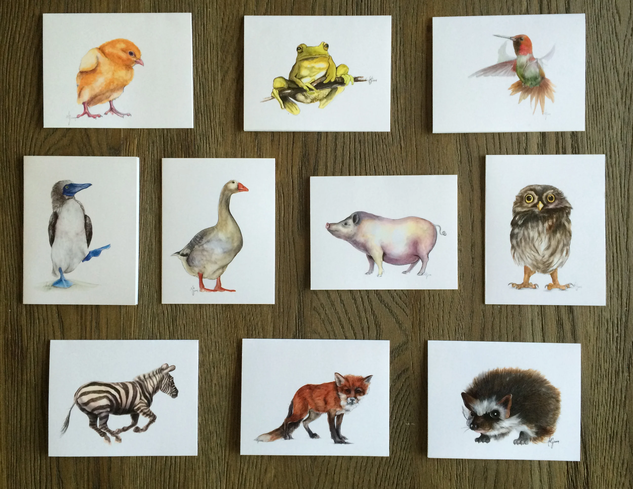 Notecards now Available on ETSY April 5, 2016 Meredith Gillespie A great gift for everyone! Boxed set of 10 folded blank cards with white envelopes. My stationery is printed on eco-friendly natural card stock but it has a gloss finish. Each set includes all 10 animals.Specifications:Size: 4.25 x 5.5"Count: Set of 10 assorted folded cards and envelopesPaper: Gloss White Cover StockEnvelopes: WhitePresentation: Includes branded gift box