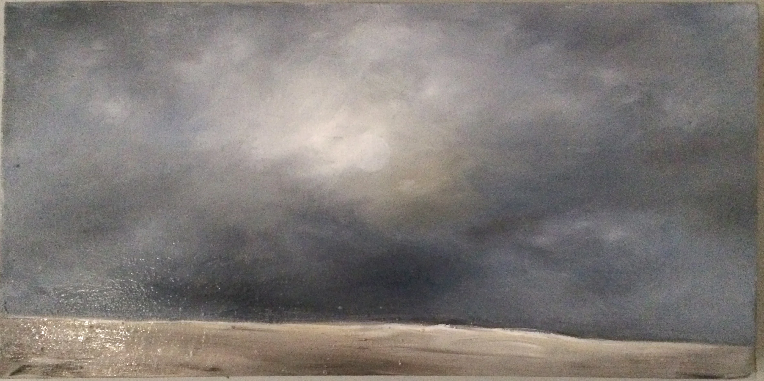 Moonrise March 29, 2016 Meredith Gillespie 16" x 24" oil on canvas. A spin off of an earlier painting of the East Beach in November.