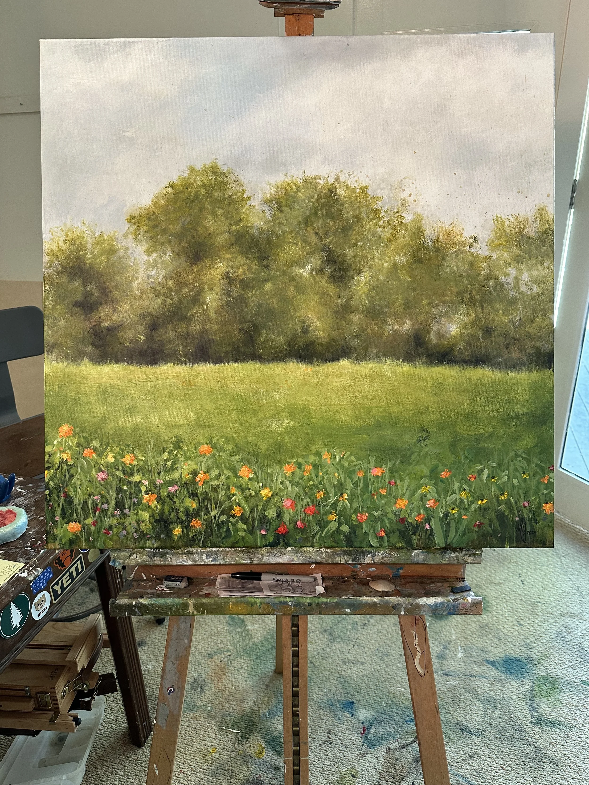 I created a series of plein air watercolors while I was up at the farm this past summer. The originals were snatched up by a local collector but I brought my some of my sketches back to the studio to use as inspiration for a few larger paintings.