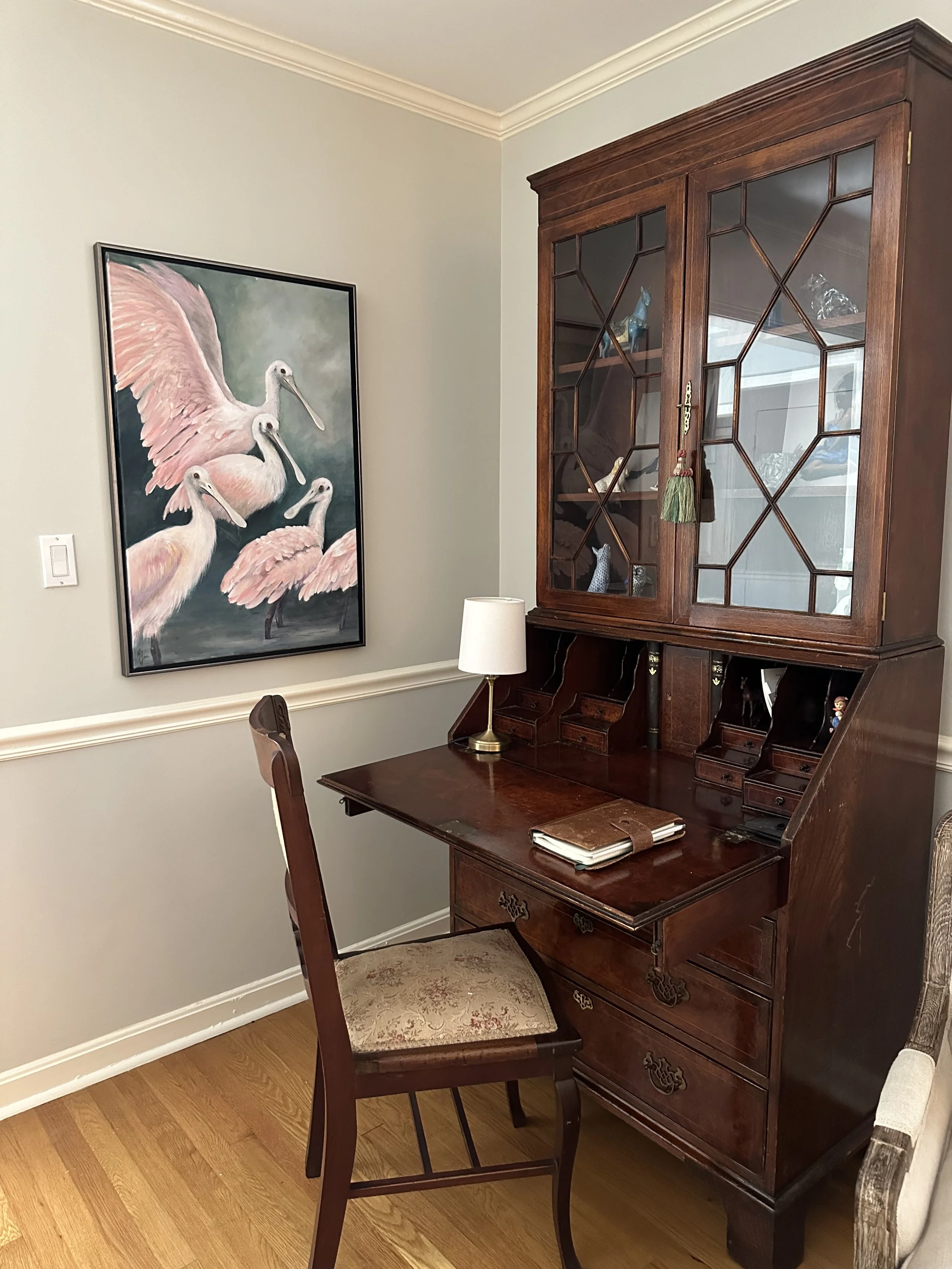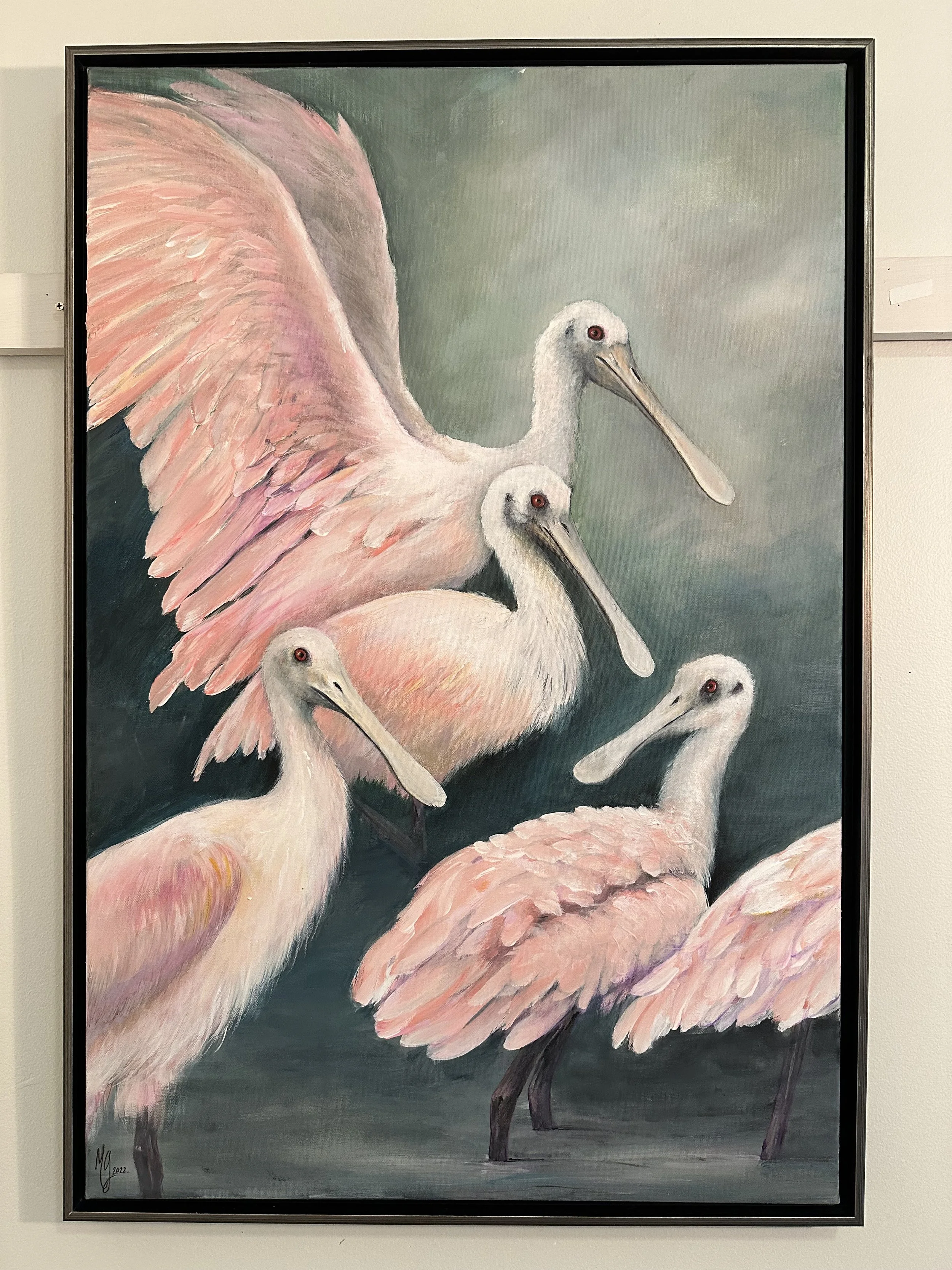 Feathers! A commission of eight feathers - Watercolor 10” x 17”; Feathers are 12” tall featuring a Blackbird, Barn Owl, Meadowlark, Wild Turkey, Blue Jay, Red Headed Woodpecker, Green-tealed Duck and a Mourning Dove.